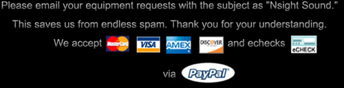 DACs, Drawmer, R. Neve, Grace, Lexicon, Chandler, Millenia, Universal Audio, Eventide, D.W. Fern, API, Genelec, Adam, Josephson, Bryston, Wunder Audio, Shure, Rode, Sennheiser, Countryman, CAD, Neumann, Beyerdynamic, Gefell, DPA, RME, Apogee, Mackie, Sound Devices, Digidesign, Prismsound, Avalon, Greatriver.